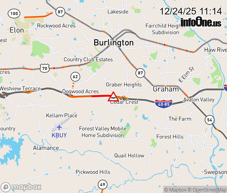 Canceled 12/24/25 11:42 AM Location: I-85N at MM 145, NC Vehicle Crash.