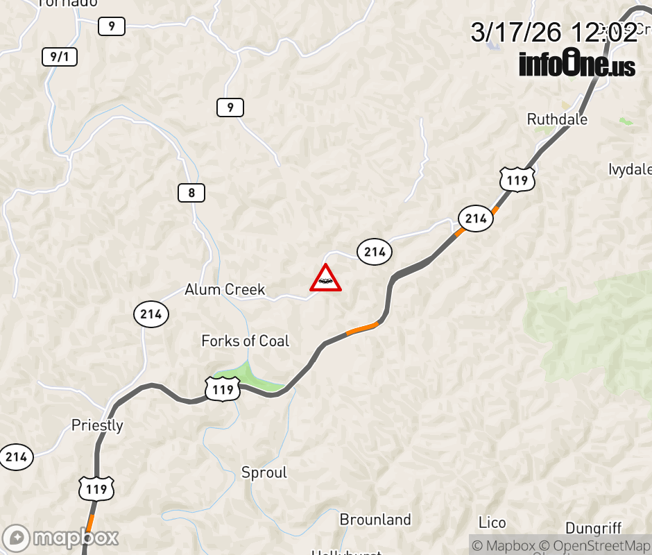 Vehicle Crash on WV-214 at Mile Marker 1.65. ![]() |