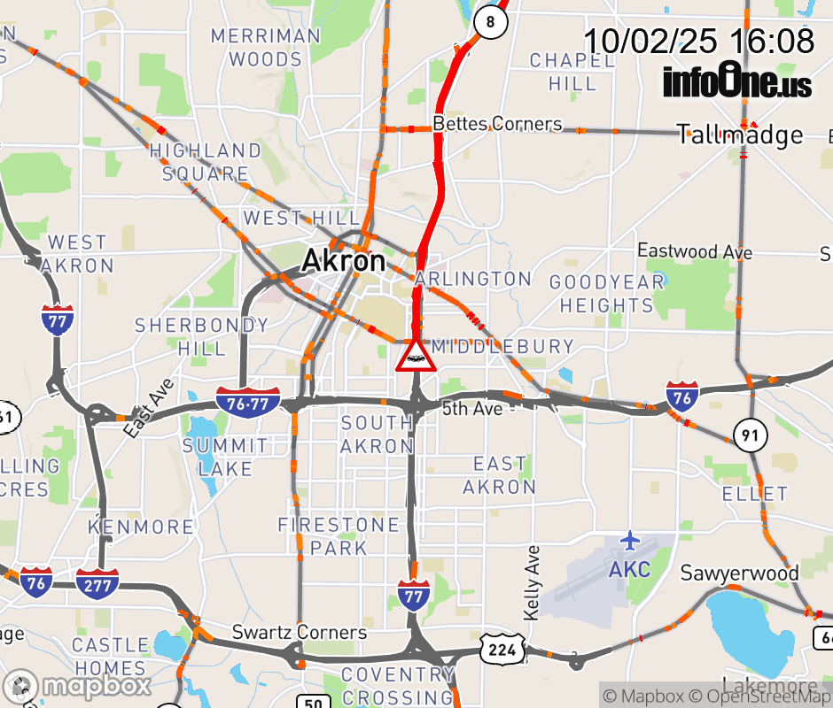 The 2 right lanes are blocked on SR-8 South beyond Buchtel Ave/Carroll St/Exchange St, due to a crash. Updated: Thu 10/2/25 4:08 PM EDT ![]() Updated: Thu 10/2/25 4:08 PM EDT |