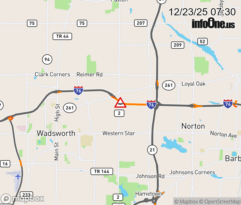 Canceled 12/23/25 8:04 AM Location: I-76/US-224 East E, OH Accident.