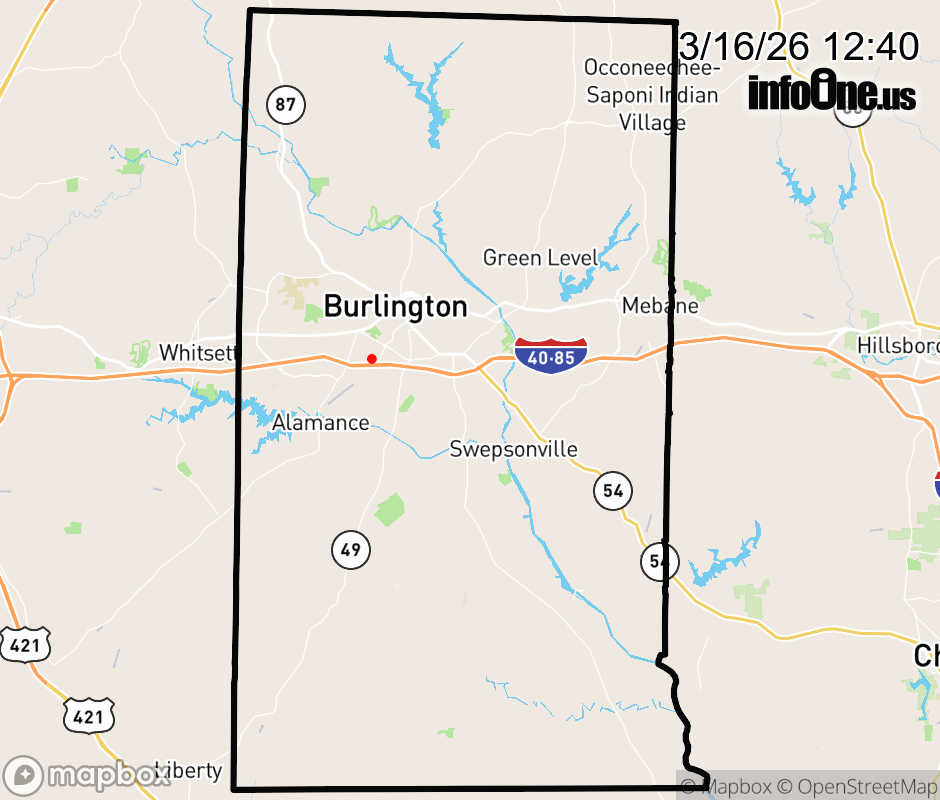 Canceled 3/16/26 12:50 PM Alamance County has 1 power outage affecting 1 customer. Duke Energy 1 without power Updated: Mon 3/16/26 12:40 PM EDT ![]() Updated: Mon 3/16/26 12:40 PM EDT |