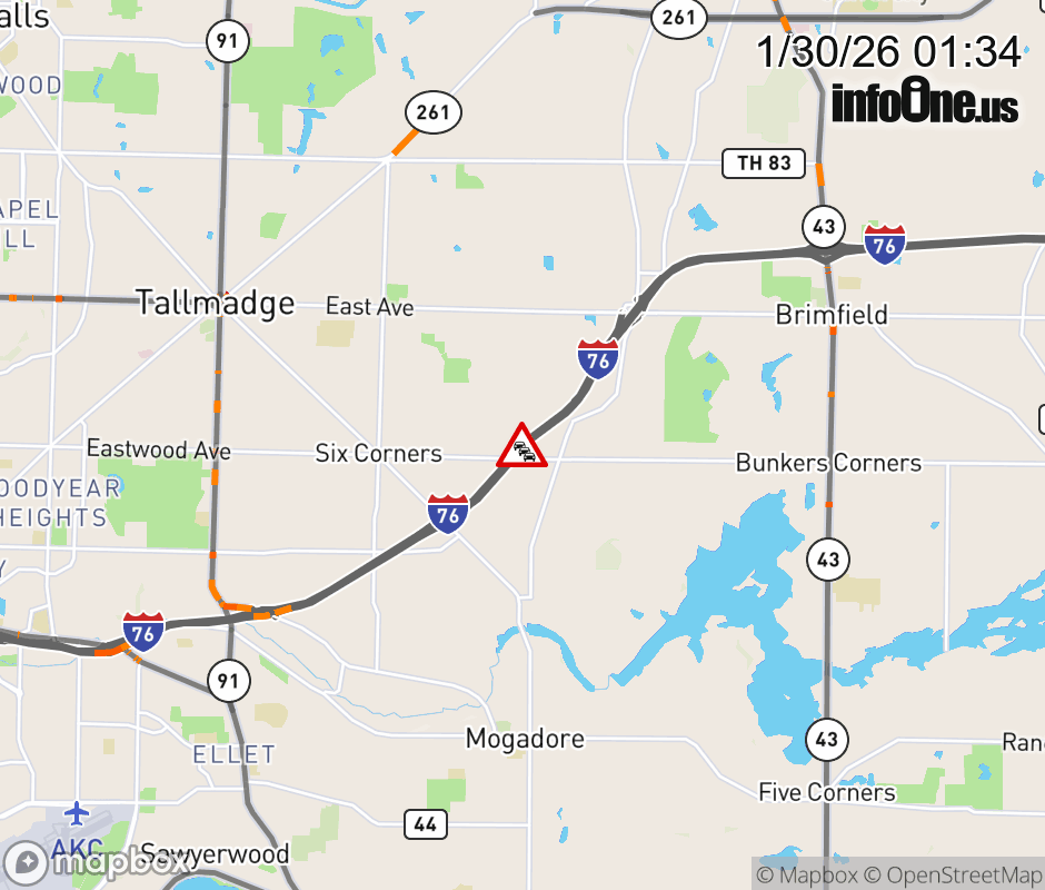 Location: I-76 West at MM 30.1, OH Construction.