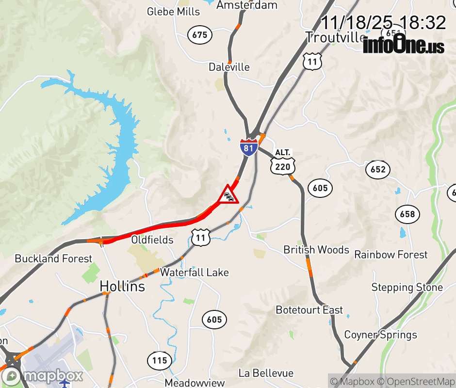 On I-81 at mile marker 149.2 in the County of Botetourt, motorists can expect delays due to a vehicle fire. The north right shoulder is closed.
