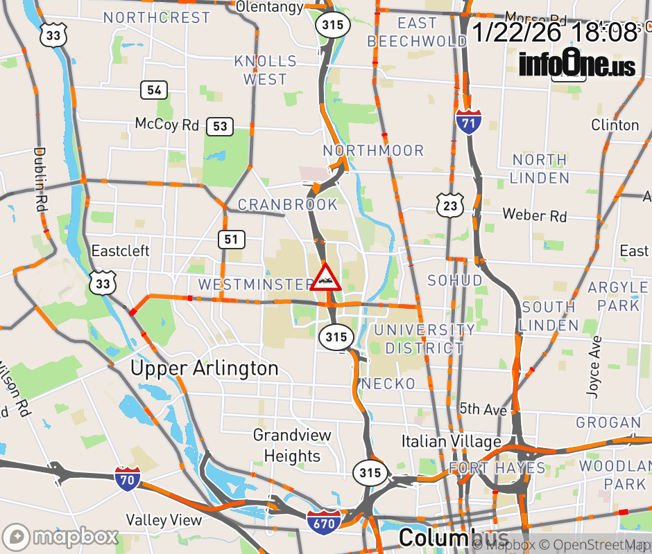 The left lane is blocked on SR-315 South at W Lane Ave, due to a disabled vehicle. Updated: Thu 1/22/26 6:08 PM EST ![]() Updated: Thu 1/22/26 6:08 PM EST |