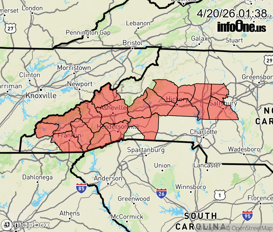 Canceled 4/20/26 1:40 PM Frost Advisory issued April 20 at 1:37AM EDT until April 21 at 9:00AM EDT by NWS Greenville-Spartanburg SC * WHAT... Temperatures as low as 33 will result in frost formation. * WHERE... Portions of western North Carolina. * WHEN... From midnight tonight to 9 AM EDT Tuesday. * IMPACTS... Frost could harm sensitive outdoor vegetation. Sensitive outdoor plants may be killed if left uncovered. ![]() |