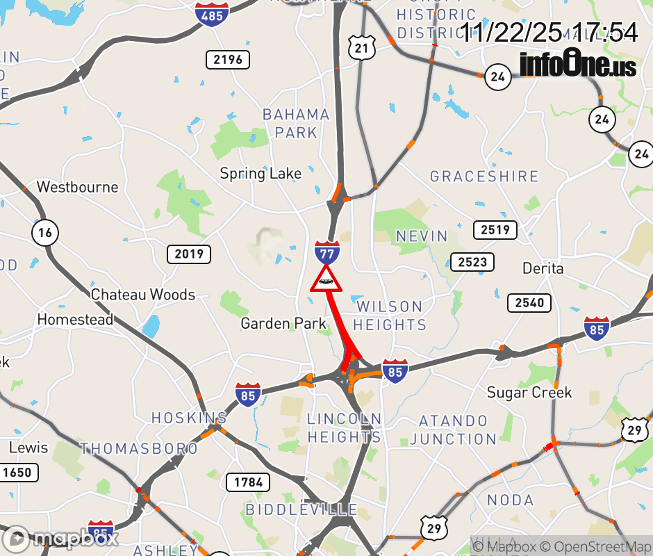 Canceled 11/22/25 6:32 PM Location: I-77N at MM 14.4, NC Vehicle Crash.