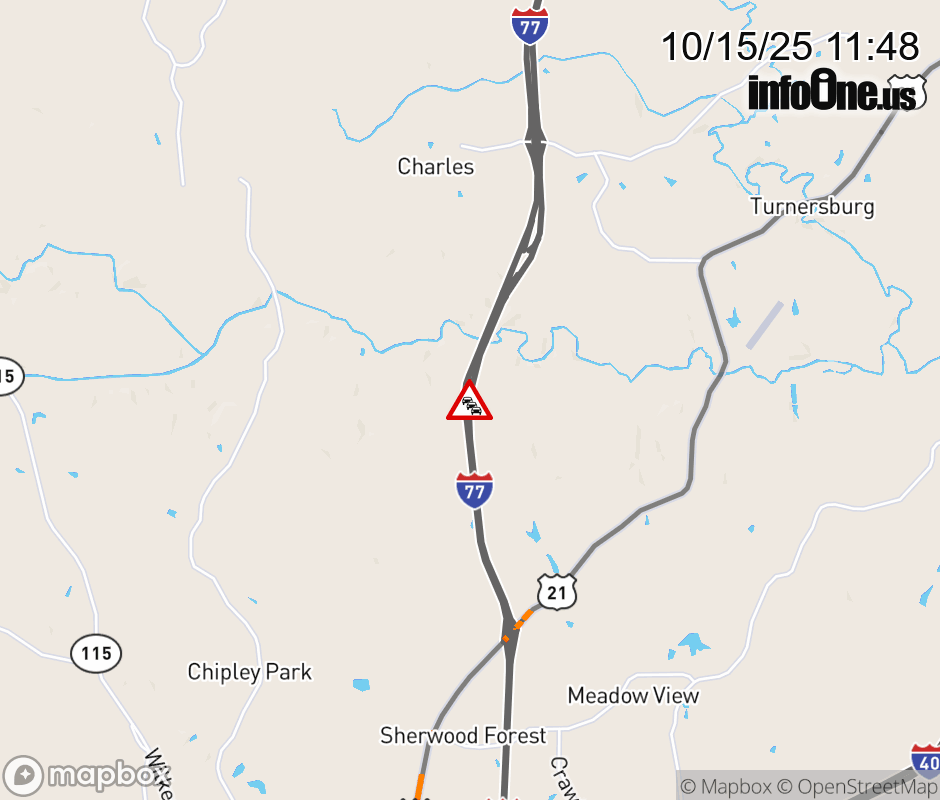 The right lane is closed past Exit 54 (US 21). ![]() |