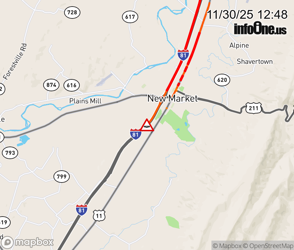 On I-81 South at mile marker 264 in the County of Shenandoah, motorists can expect delays due to a multi-vehicle crash. Traffic backups are approximately 5.0 miles. Updated: Sun 11/30/25 12:48 PM EST ![]() Updated: Sun 11/30/25 12:48 PM EST |
