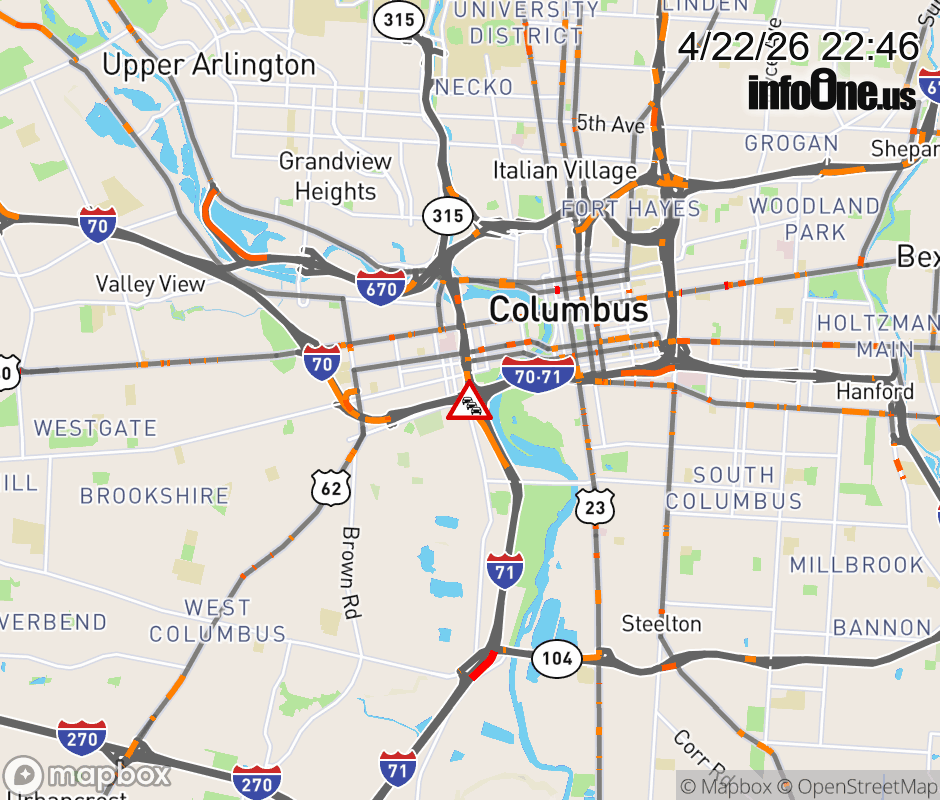 Ramp I-71 North to I-70 West CLOSED because of repairs/maintenance. ![]() |