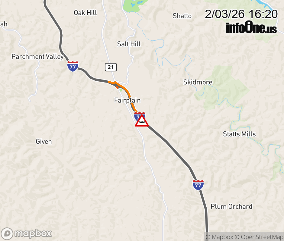 Canceled 2/3/26 6:56 PM Location: I-77 at MM 131.0, WV Accident.