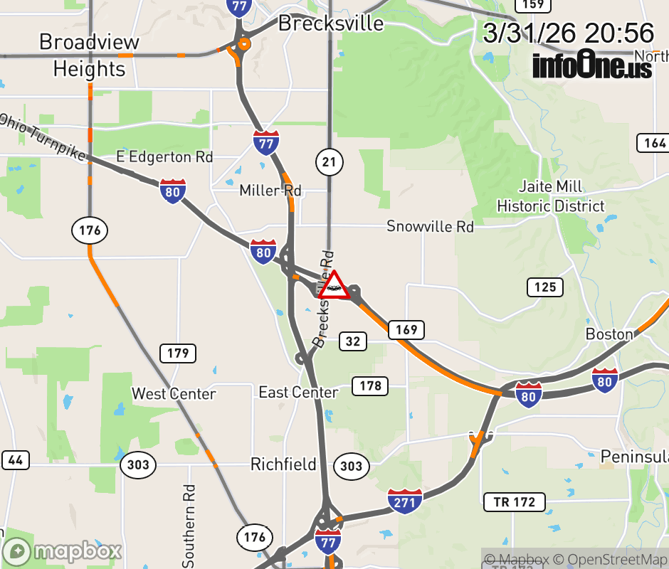 Expect lane closures on I-80 East (Ohio Turnpike) at I-77, due to a crash. ![]() |