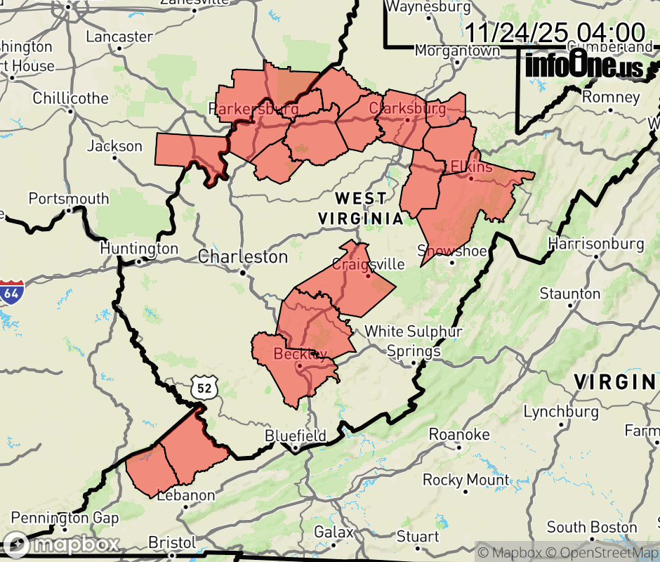 Special Weather Statement issued November 24 at 3:58AM EST by NWS Charleston WV Areas of valley fog have developed and will persist into the Monday morning commute time. Motorists should expect to encounter sudden changes in visibility if driving late tonight through mid- morning on Monday. If encountering an area of dense fog, slow down, increase the space between you and the vehicle in front of you, and use low beam headlights for safety and increased visibility. ![]() |