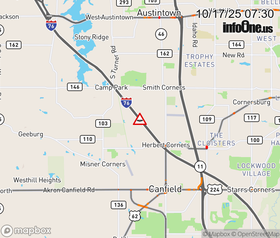 Expect lane closures on I-76 West (Ohio Turnpike) beyond SR-7, due to a crash. ![]() |