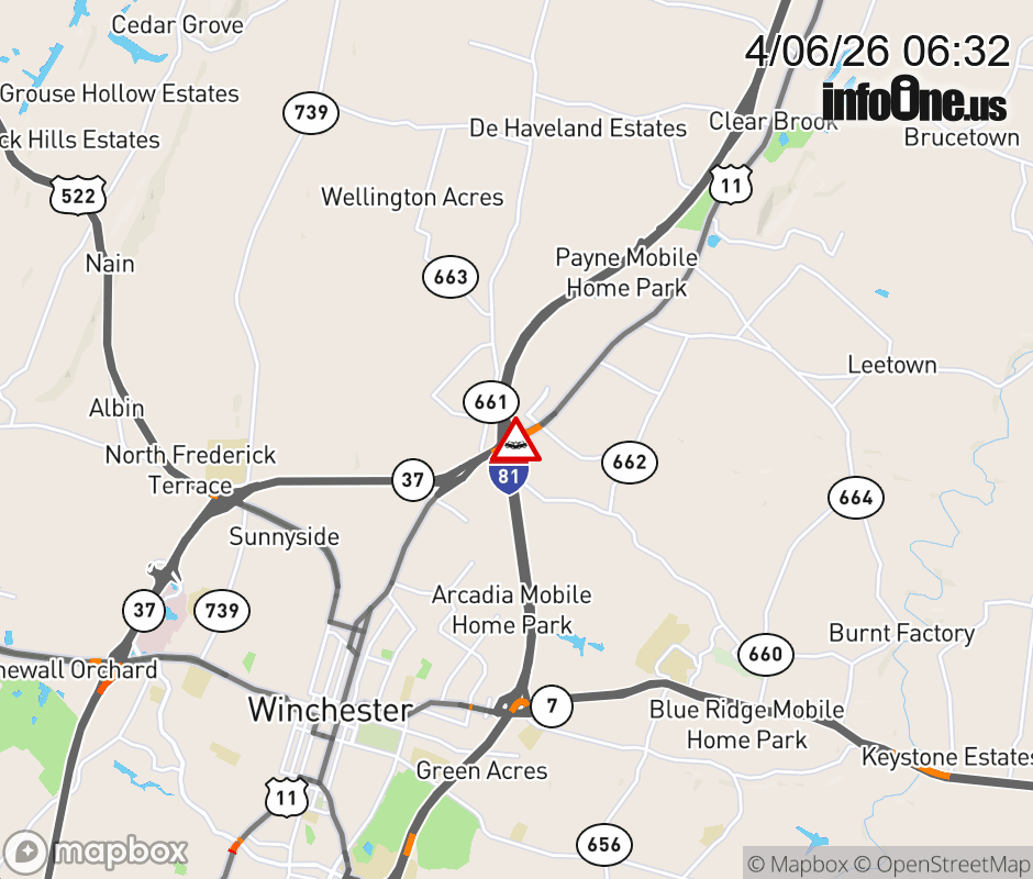 On US-11 in the County of Frederick, in the vicinity of the ramp to I-81N, motorists can expect delays due to a vehicle crash. The north right shoulder is closed. ![]() |