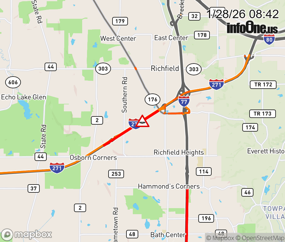 Expect lane closures on I-271 North beyond Summit County Rest Area 4-39, due to a crash. ![]() |