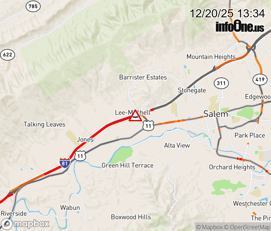 On I-81 at mile marker 137 in the County of Roanoke, motorists can expect delays due to a vehicle crash. The north left shoulder is closed. Updated: Sat 12/20/25 1:34 PM EST ![]() Updated: Sat 12/20/25 1:34 PM EST |