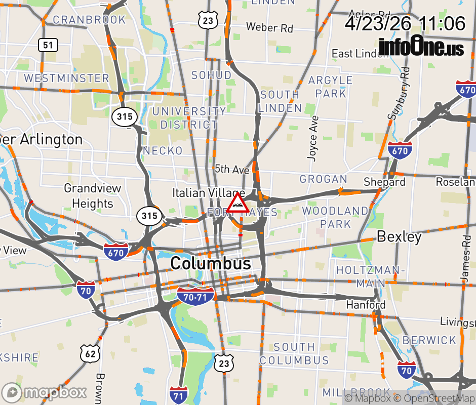 The right shoulder is blocked on I-670 West at High St/US-23 S/Third St, due to a disabled vehicle. ![]() |