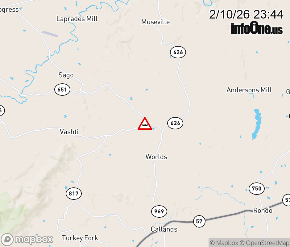 On Rt. 969 in the County of Pittsylvania, in the vicinity of Cavalry Rd; Rt. 652E/W (Pittsylvania County), motorists can expect delays due to a tractor trailer crash. All north lanes are closed. All south lanes are closed. Updated: Tue 2/10/26 11:44 PM EST ![]() Updated: Tue 2/10/26 11:44 PM EST |