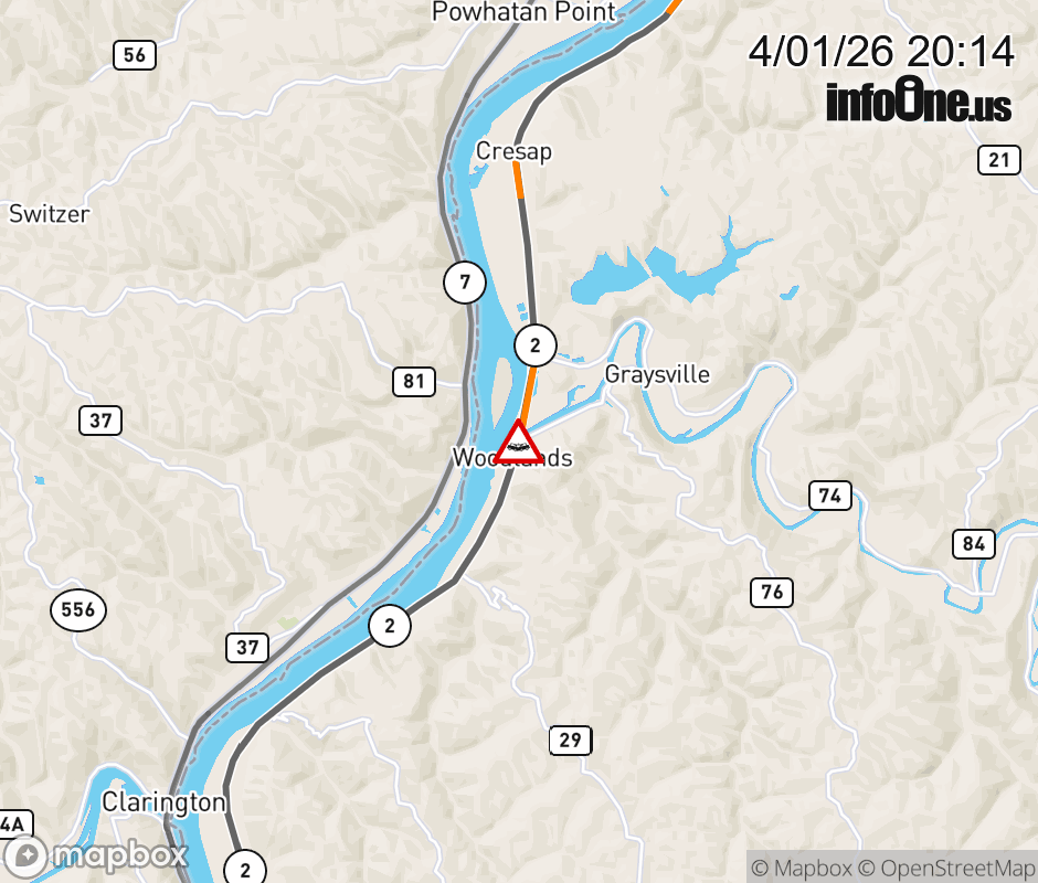 Vehicle Crash on WV-2 at Mile Marker 7.75. ![]() |
