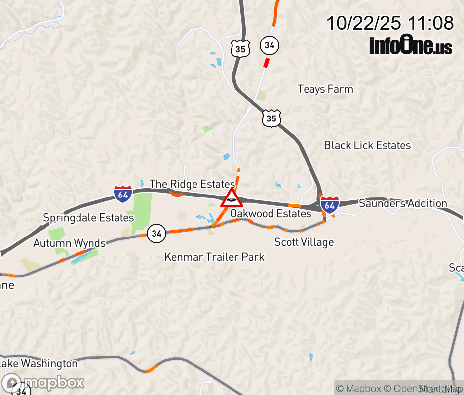 Vehicle Crash on WV-34 at I-64 WB Ramps. The northbound left lane is closed.