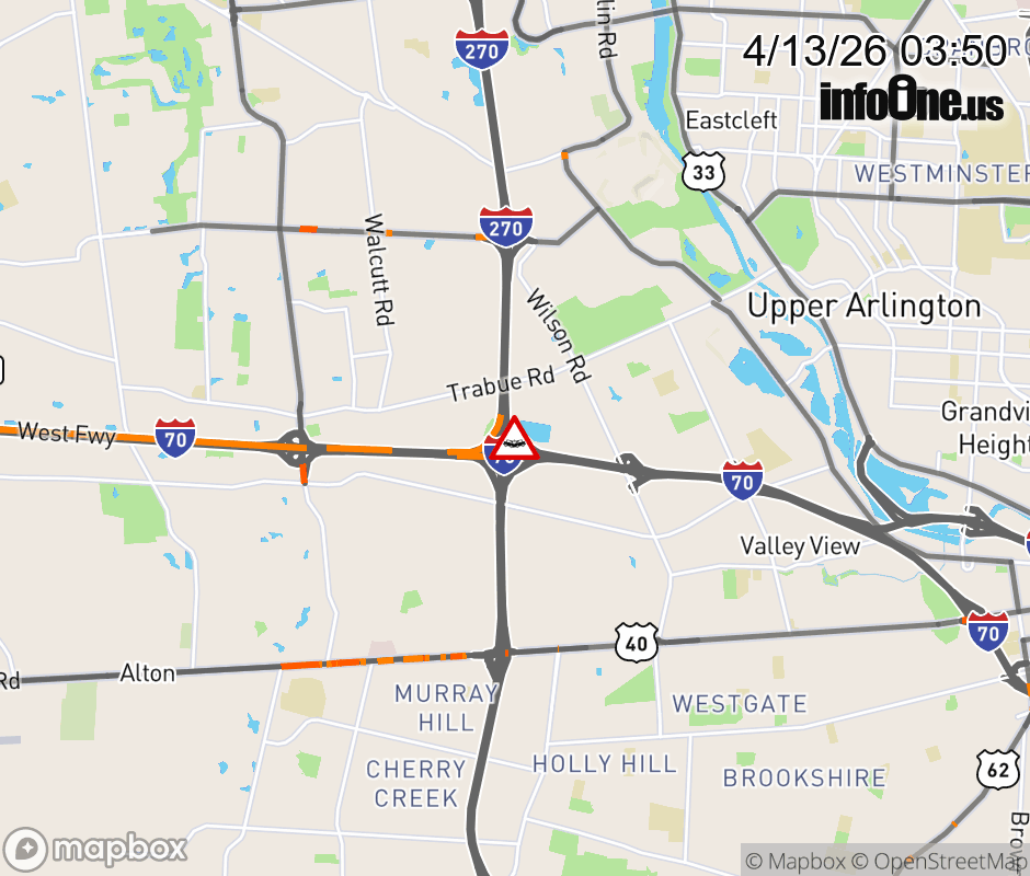 Ramp I-70 West to I-270 South CLOSED because of a crash. ![]() |