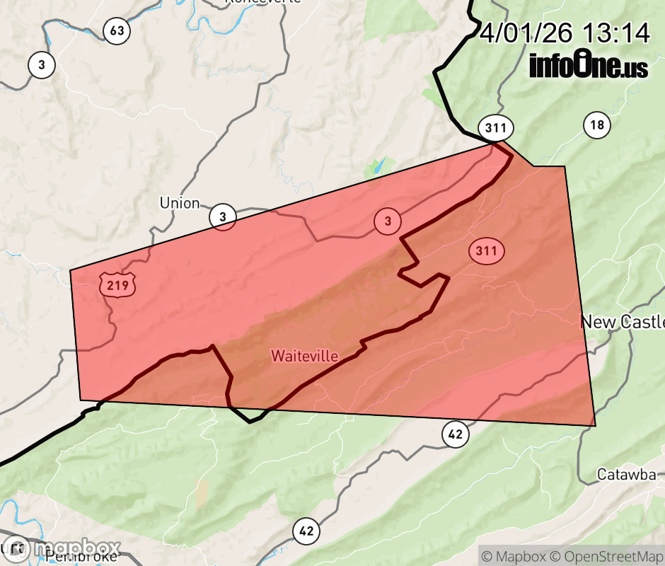 Canceled 4/1/26 1:47 PM Severe Thunderstorm Warning issued April 1 at 1:13PM EDT until April 1 at 2:15PM EDT by NWS Blacksburg VA SVRRNK The National Weather Service in BLACKSBURG has issued a * Severe Thunderstorm Warning for... Northeastern Giles County in southwestern Virginia... Central Craig County in southwestern Virginia... Central Monroe County in southeastern West Virginia... * Until 215 PM EDT. * At 113 PM EDT, a severe thunderstorm was located over Zenith, or 7 miles south of Union, moving east at 25 mph. HAZARD...60 mph wind gusts and quarter size hail. SOURCE...Radar indicated. IMPACT...Hail damage to vehicles is expected. Expect wind damage to roofs, siding, and trees. * Locations impacted include... Paint Bank... Sweet Springs... Laurel Branch... Craig Springs... Waiteville... Raines Corner... and Maggie. ![]() |