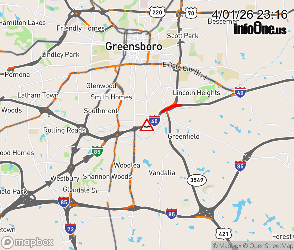 The two left lanes are closed at Exit 221 (S Elm Eugene St) Updated: Wed 4/1/26 11:16 PM EDT ![]() Updated: Wed 4/1/26 11:16 PM EDT |