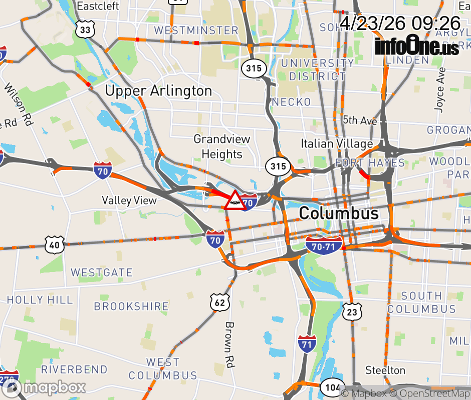 The right shoulder is blocked on I-670 East beyond Grandview Ave, due to a crash. Updated: Thu 4/23/26 9:26 AM EDT ![]() Updated: Thu 4/23/26 9:26 AM EDT |