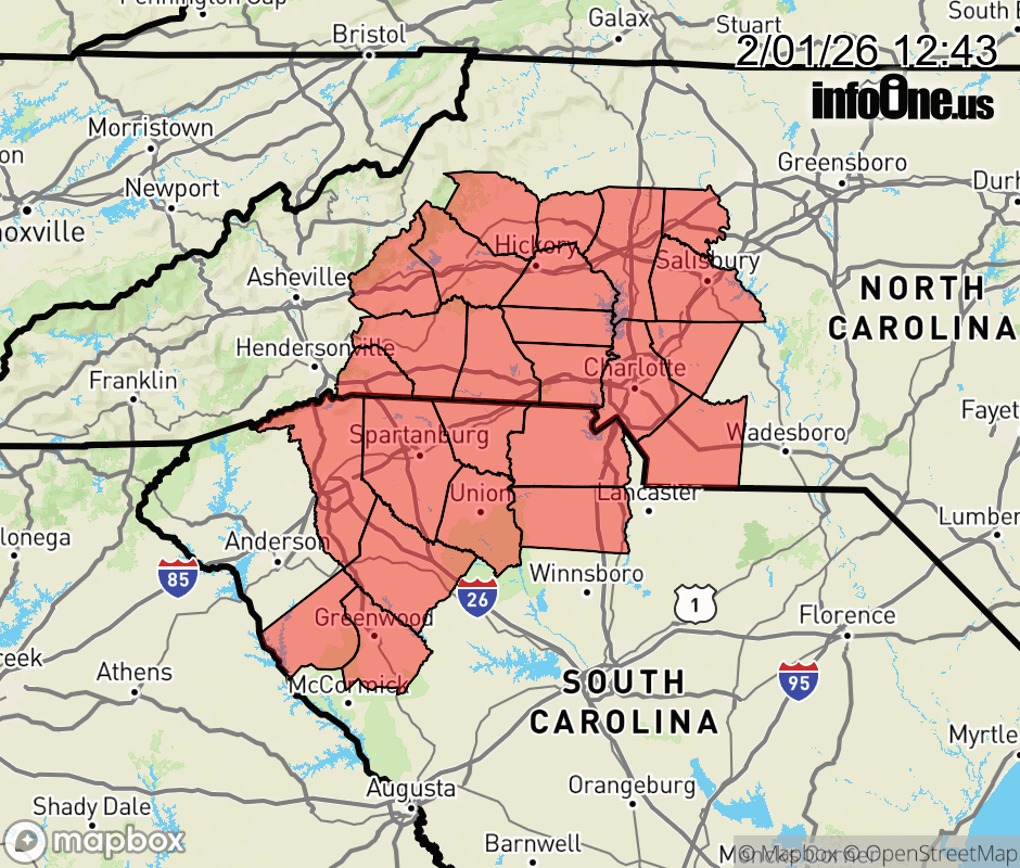Canceled 2/1/26 1:28 PM Cold Weather Advisory issued February 1 at 12:42PM EST until February 2 at 9:00AM EST by NWS Greenville-Spartanburg SC * WHAT... Very cold wind chills as low as 5 degrees expected. * WHERE... The North Carolina foothills and Piedmont as well as portions of the South Carolina Upstate. * WHEN... From 6 PM this evening to 9 AM EST Monday. * IMPACTS... The cold wind chills as low as 5 above zero could result in hypothermia if precautions are not taken. Frostbite and hypothermia will occur if unprotected skin is exposed to these temperatures. ![]() |