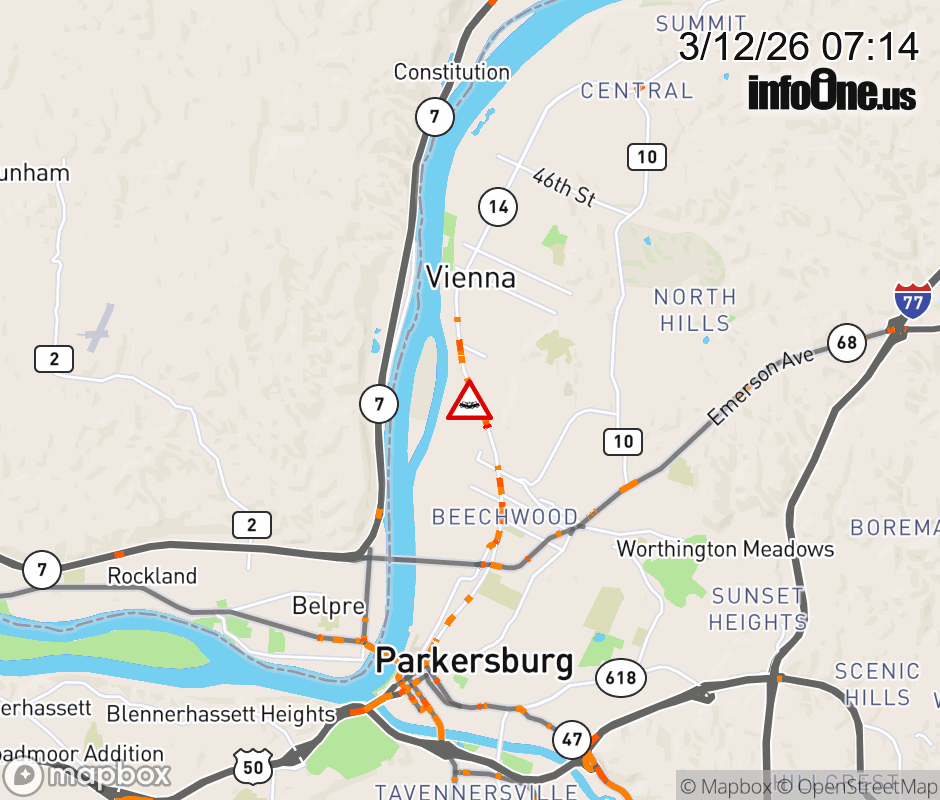 Vehicle Crash on WV-14 (Area of Grand Central Ave) in Parkersburg. Updated: Thu 3/12/26 7:14 AM EDT ![]() Updated: Thu 3/12/26 7:14 AM EDT |