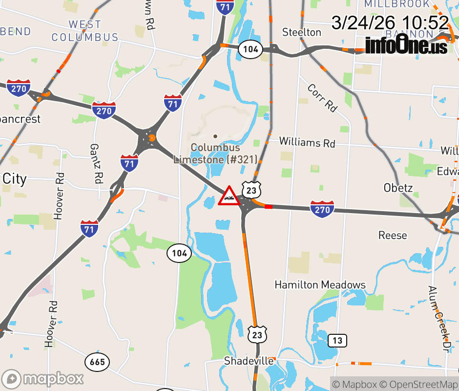 The right lane is blocked on I-270 West beyond US-23/S High St South, due to a disabled vehicle. ![]() |