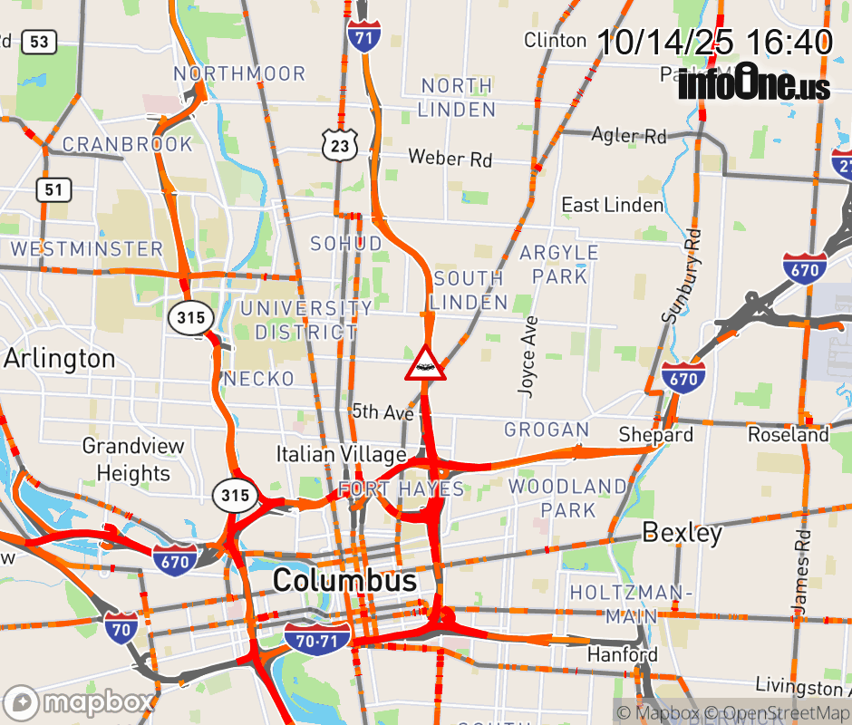 The left lane is blocked on I-71 South at 11Th Ave, due to a crash. ![]() |
