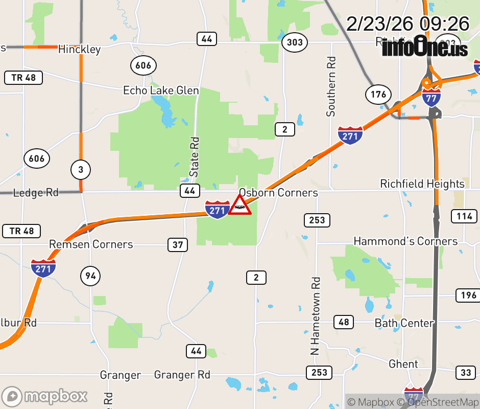 Expect lane closures on I-271 South beyond Summit County Rest Area 4-4, due to a crash. ![]() |