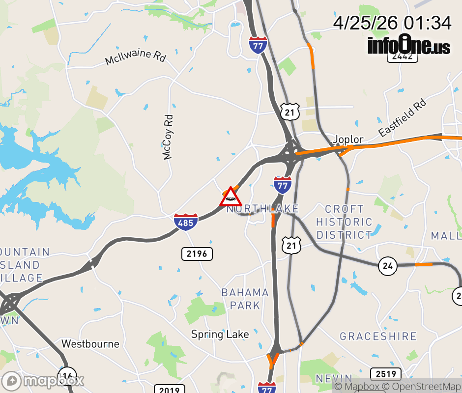 The shoulder is closed near Exit 21 (Harris Blvd). Updated: Sat 4/25/26 1:34 AM EDT ![]() Updated: Sat 4/25/26 1:34 AM EDT |