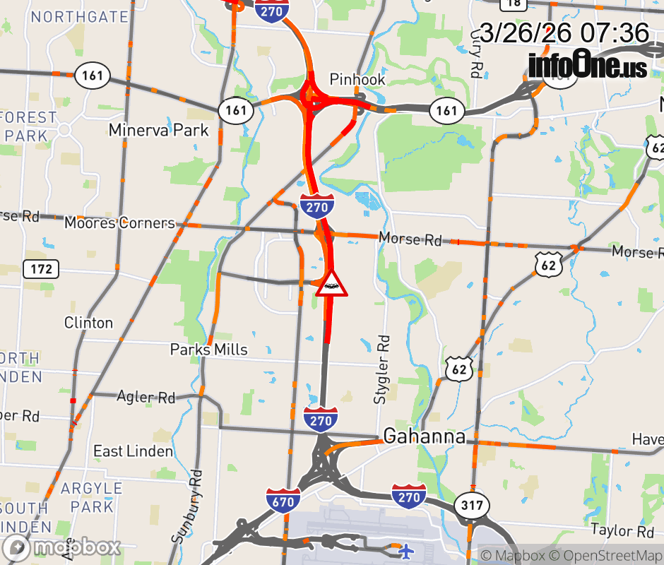 All lanes are closed on Ramp from Easton Way to I-270 N, due to a crash. ![]() |