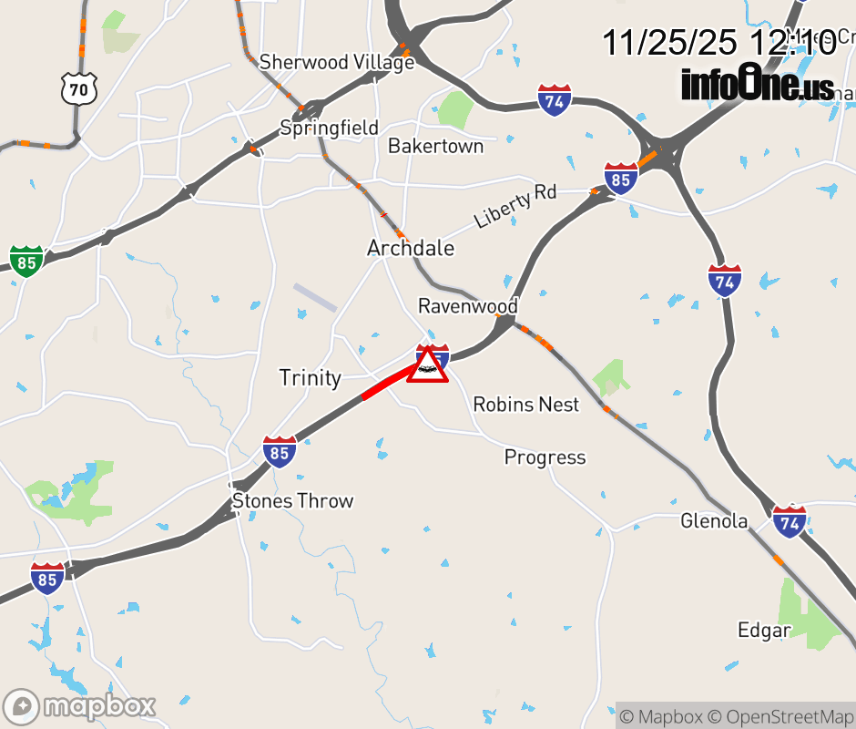 Canceled 11/25/25 1:20 PM Location: I-85N at MM 110, NC Vehicle Crash.
