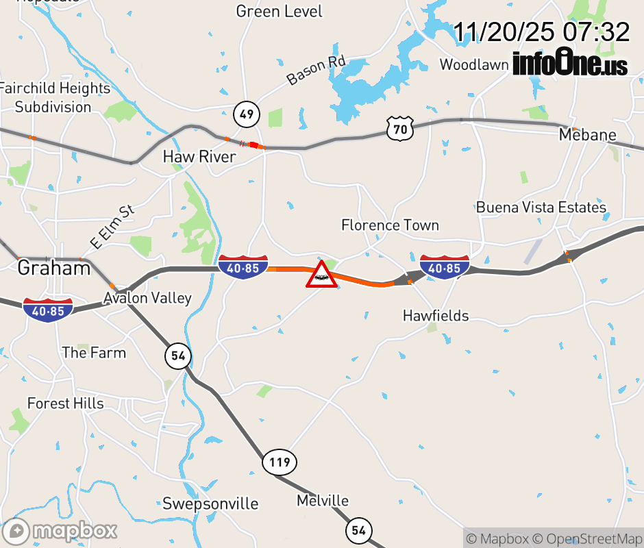 Canceled 11/20/25 7:36 AM Location: I-40E at MM 151, NC Vehicle Crash.
