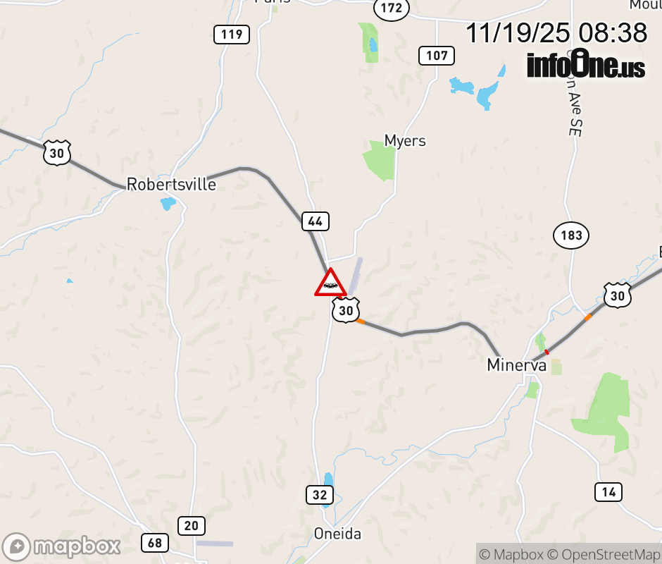 Expect lane closures on US-30 East at Paris Ave Se, due to a crash. Expect lane closures on US-30 West at Paris Ave Se, due to a crash. Updated: Wed 11/19/25 8:38 AM EST ![]() Updated: Wed 11/19/25 8:38 AM EST |