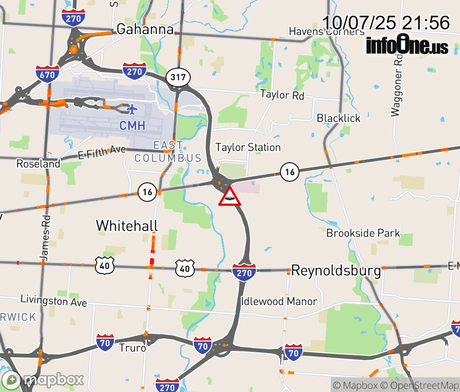 The right lane is blocked on I-270 North beyond SR-16/Broad St, due to a crash. ![]() |