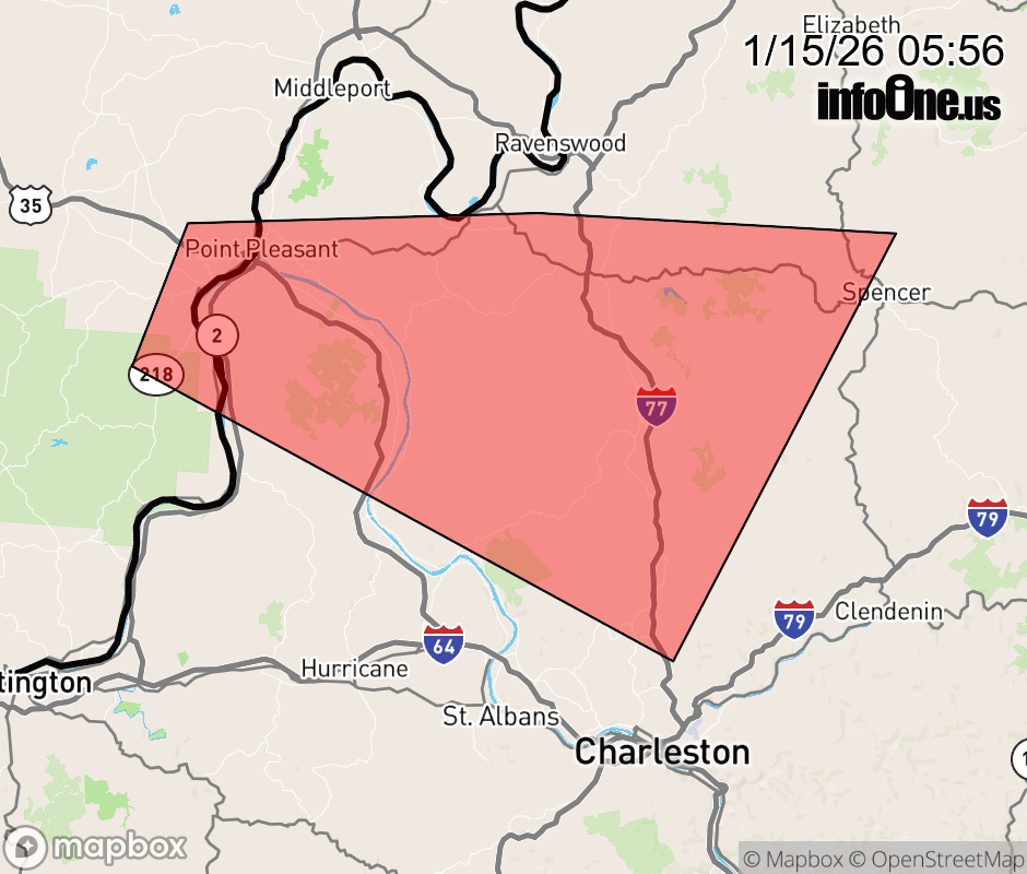 Canceled 1/15/26 6:45 AM Snow Squall Warning issued January 15 at 5:54AM EST until January 15 at 6:45AM EST by NWS Charleston WV The National Weather Service in Charleston West Virginia has issued a * Snow Squall Warning for... East central Gallia County in southeastern Ohio... Mason County in western West Virginia... Northern Putnam County in western West Virginia... North central Kanawha County in central West Virginia... Northwestern Roane County in central West Virginia... Jackson County in northwestern West Virginia... * Until 645 AM EST. * At 553 AM EST, a dangerous snow squall was located 7 miles east of Point Pleasant, moving east at 35 mph. HAZARD...Intense bursts of heavy snow. Gusty winds leading to blowing snow and visibility rapidly falling to less than one-quarter mile. Wind gusts up to 35 mph. SOURCE...Radar and webcams. IMPACT...Travel will become difficult and potentially dangerous within minutes. This includes Interstate 77 in West Virginia between mile markers 109 and 142. Locations impacted include... Point Pleasant, Gallipolis, Ripley, Spencer, Sissonville, Buffalo, Kenna, Henderson, Leon, Mount Alto, Statts Mills, Harmony, Given, Southside, Kentuck, Liberty, Cottageville, Grimms Landing, Gallopolis Ferry, and Evans. ![]() |