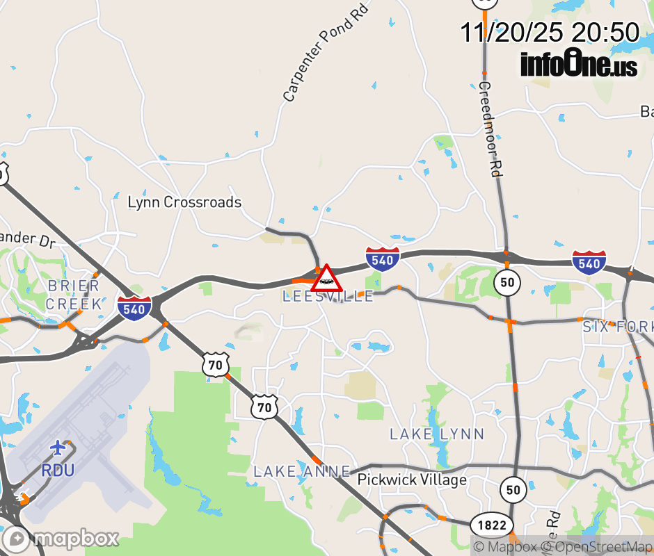 Canceled 11/20/25 10:02 PM Location: I-540E at MM 7, NC Vehicle Crash.
