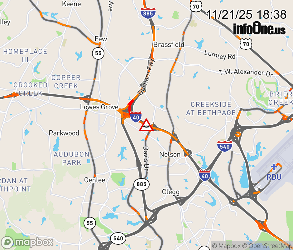The left lane is closed near Exit 280 (Davis Dr). ![]() |