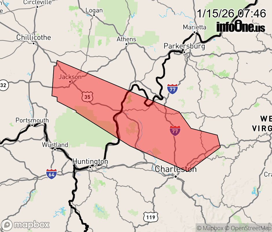 Canceled 1/15/26 8:45 AM Snow Squall Warning issued January 15 at 7:45AM EST until January 15 at 8:45AM EST by NWS Charleston WV The National Weather Service in Charleston West Virginia has issued a * Snow Squall Warning for... Southwestern Meigs County in southeastern Ohio... Gallia County in southeastern Ohio... Jackson County in southeastern Ohio... Southern Vinton County in southeastern Ohio... Mason County in western West Virginia... Northern Putnam County in western West Virginia... Northeastern Kanawha County in central West Virginia... Southwestern Roane County in central West Virginia... Southern Jackson County in northwestern West Virginia... * Until 845 AM EST. * At 744 AM EST, a dangerous snow squall was located along a line extending from near Jackson to 6 miles northwest of Buffalo to near Amma, and is nearly stationary. HAZARD...Intense bursts of heavy snow. Gusty winds leading to blowing snow and visibility rapidly falling to less than one-quarter mile. Wind gusts up to 35 mph. SOURCE...Radar indicated. IMPACT...Travel will become difficult and potentially dangerous within minutes. This includes the following highways... Interstate 79 between mile markers 4 and 28. Interstate 77 in West Virginia between mile markers 108 and 141. Locations impacted include... Jackson, Wellston, Point Pleasant, Gallipolis, Ripley, Winfield, Oak Hill, Rio Grande, Sissonville, Eleanor, Buffalo, Clendenin, Kenna, Elkview, Amma, Pinch, Gallia, Middleport, Bancroft, and Coalton. ![]() |