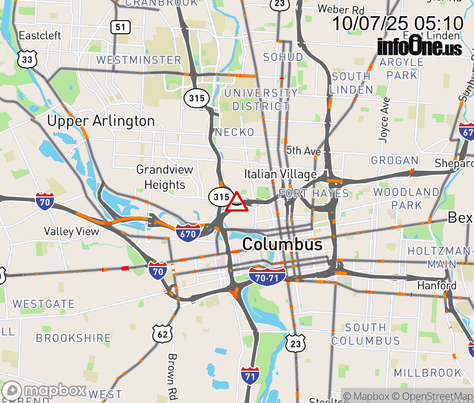 Ramp SR-315 South to I-670 East CLOSED because of a crash. Updated: Tue 10/7/25 5:10 AM EDT ![]() |