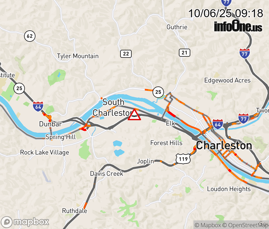 In Kanawha County there is a Vehicle Crash on CR-60/64 Montrose Drive at I-64 WB entrance. ![]() |