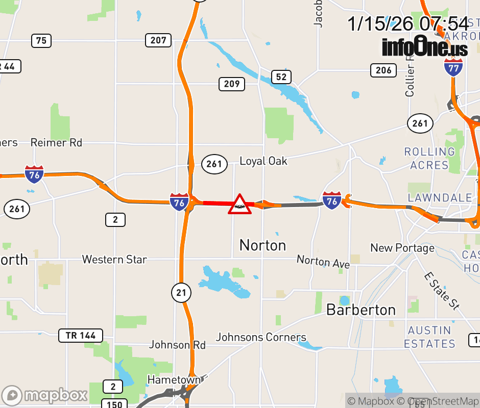 The right lane is blocked on I-76/US-224 West beyond Cleveland-Massillon Rd, due to a crash. ![]() |