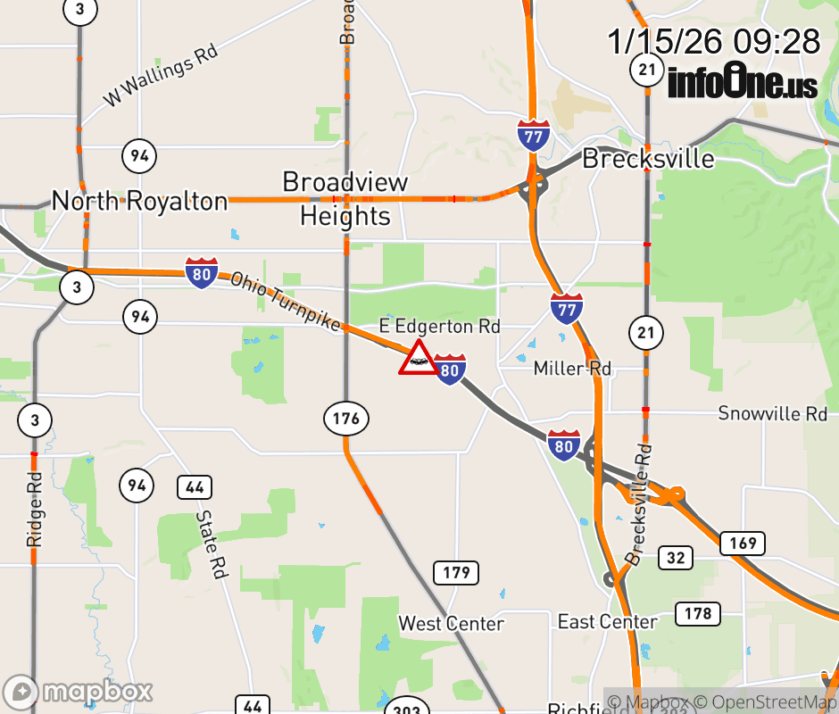 Expect lane closures on I-80 East (Ohio Turnpike) beyond I-71, due to a crash. ![]() |