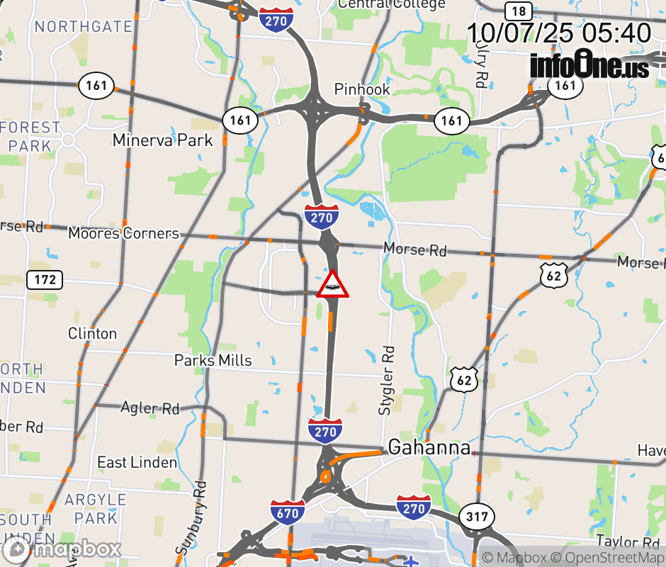 The left shoulder is blocked on I-270 South at Easton Way, due to a crash. Updated: Tue 10/7/25 5:40 AM EDT ![]() |