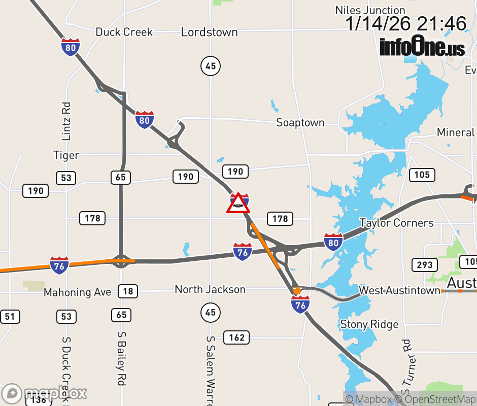 Expect lane closures on I-80 East (Ohio Turnpike) at I-76/80, due to a crash. ![]() |