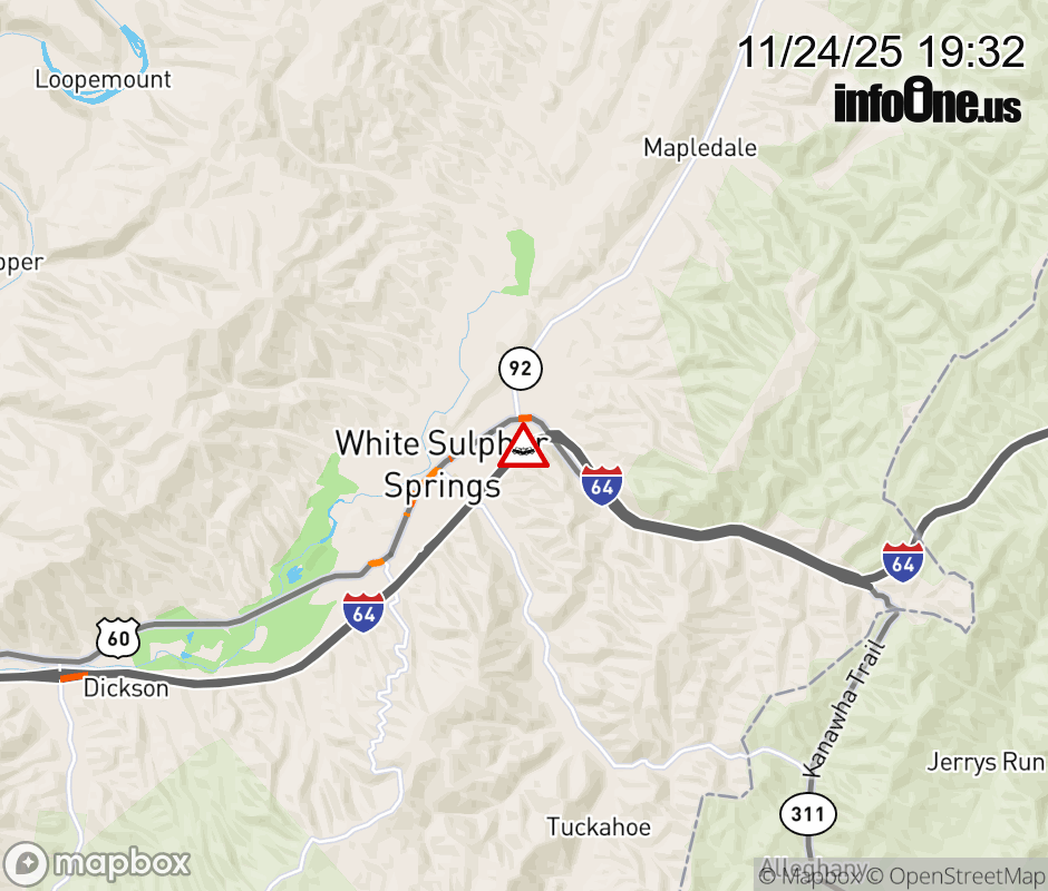 Canceled 11/24/25 8:40 PM Location: I-64 at MM 180.0, WV Accident.